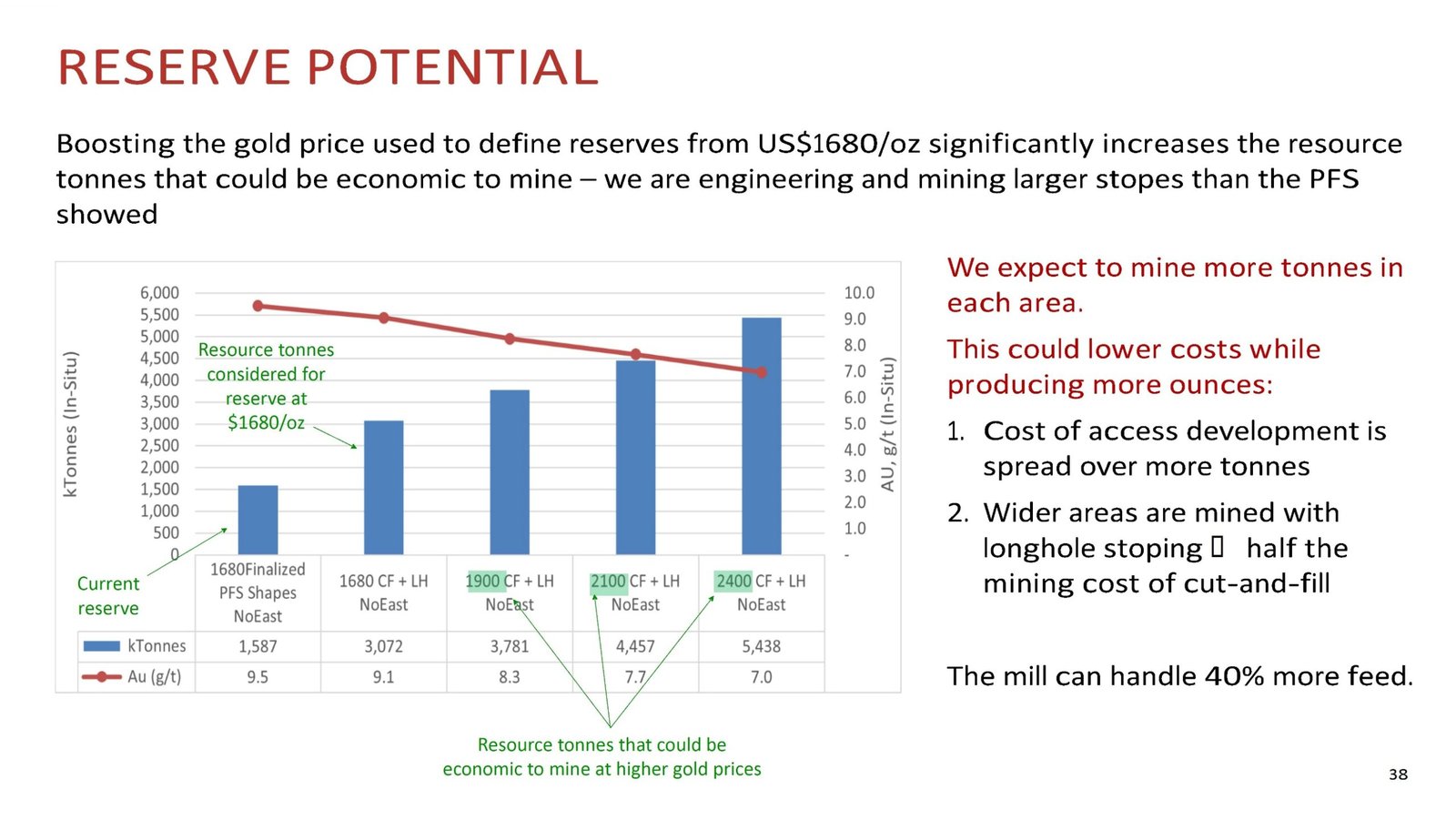 4. Mineral reserve estimates based on a gold price of US$1,680/oz and an exchange rate of 1.31 C$/US$. Longhole stope cut-off grade of 4.30 gpt Au based on an estimated operating cost of C$287.34/t including mining, plant and G&A. Mechanized Cut and Fill stope cut-off grade of 5.28 gpt Au based on an estimated operating cost of C$354.90/t including mining, plant and G&A. Incremental development cut-off grade of 1 gpt Au. A small amount of incremental longhole tonnes were included at a cut-off grade of not less than 3.4 gpt Au, these must be immediately adjacent to economic stopes that will pay for the capital to access area.
