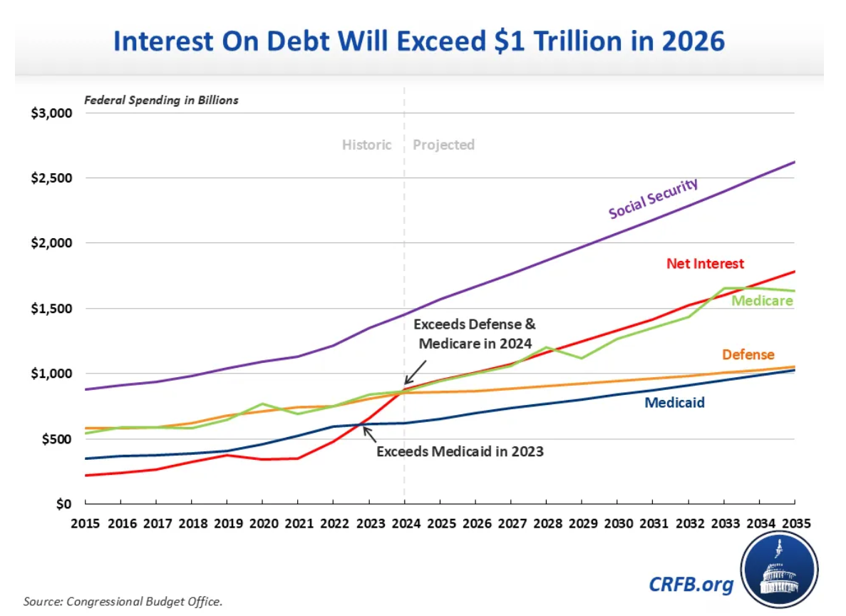 Annual interest payments on U.S. debt are now higher than its military budget.
