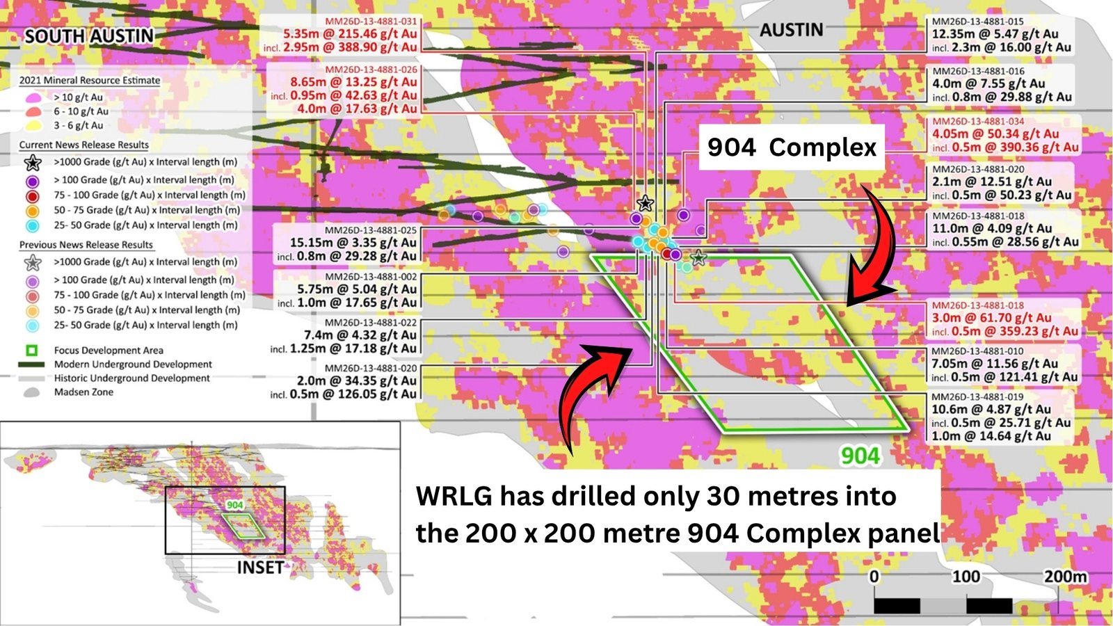 Previously released 904 highlights include 11.2 metres @ 26.16 g/t gold, 3.55 metres @ 37.87 g/t gold, 7.8 Metres @ 139.45 g/t gold, 7.7 metres @ 18.31 g/t gold, 8.7 metres @ 74.70 g/t gold, 4.3 metres @ 30.16 g/t gold.