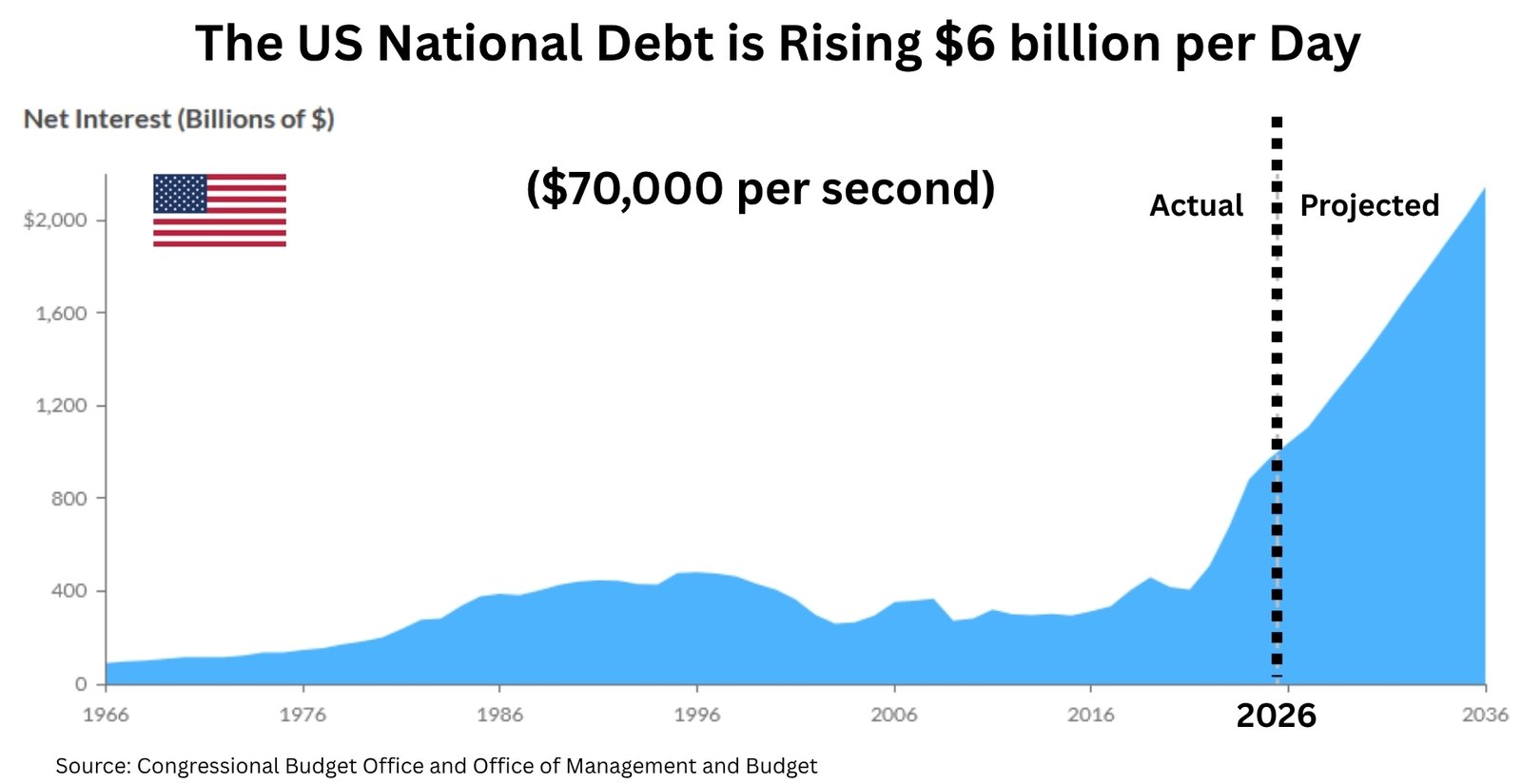 “The country with the largest debt—$39 trillion and counting—is the United States,” writes WRLG founding strategic investor Frank Giustra on March 23, 2026. “Interest on that debt now exceeds defense spending.”